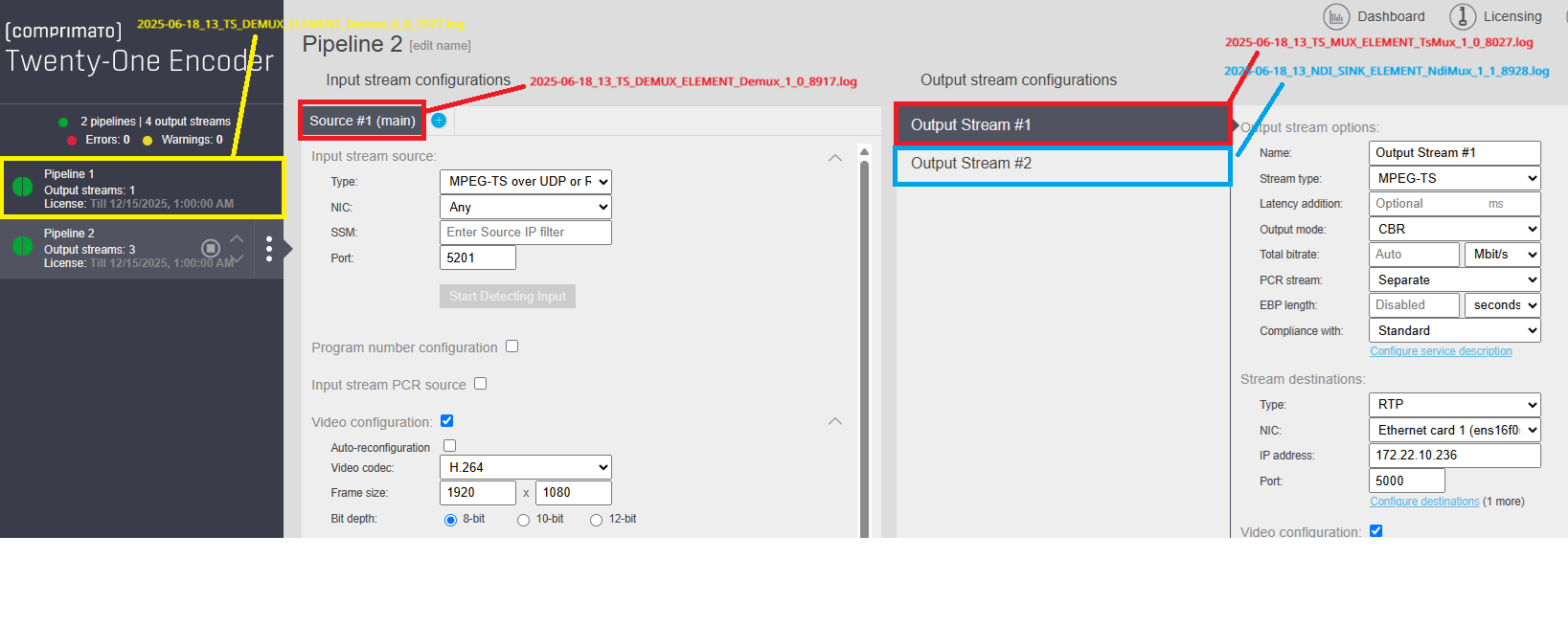 The same is the case for the output of the pipeline, YYYY-MM-DD_HH_mux_0_0_XXXX.log would be equal to Pipeline ID:0, Output 0